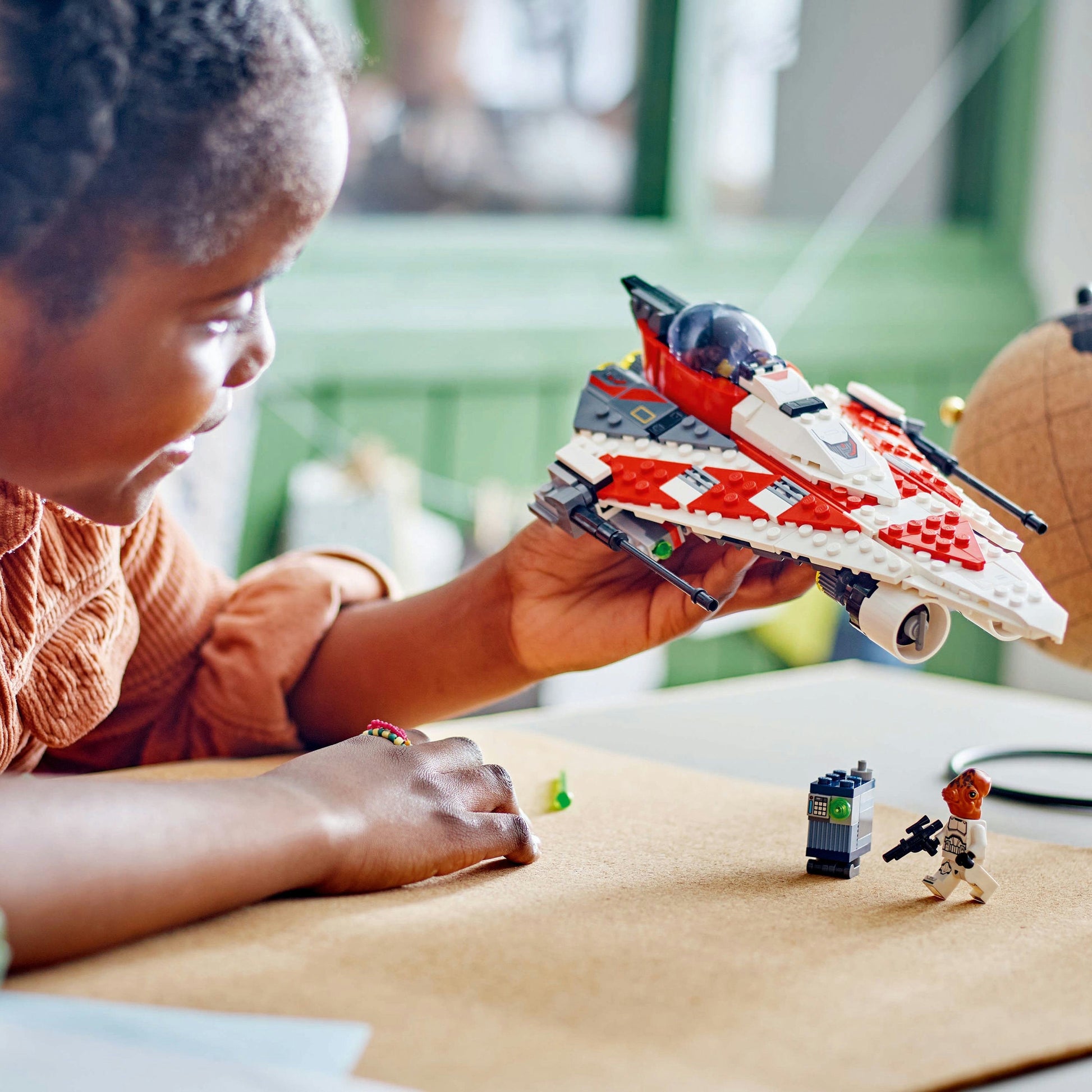 Star Wars™ Jedi starfighter – The LEGO® brick-built starship toy features an opening cockpit with a storage compartment, 2 spring-loaded shooters, clips for lightsabers and retractable landing gear