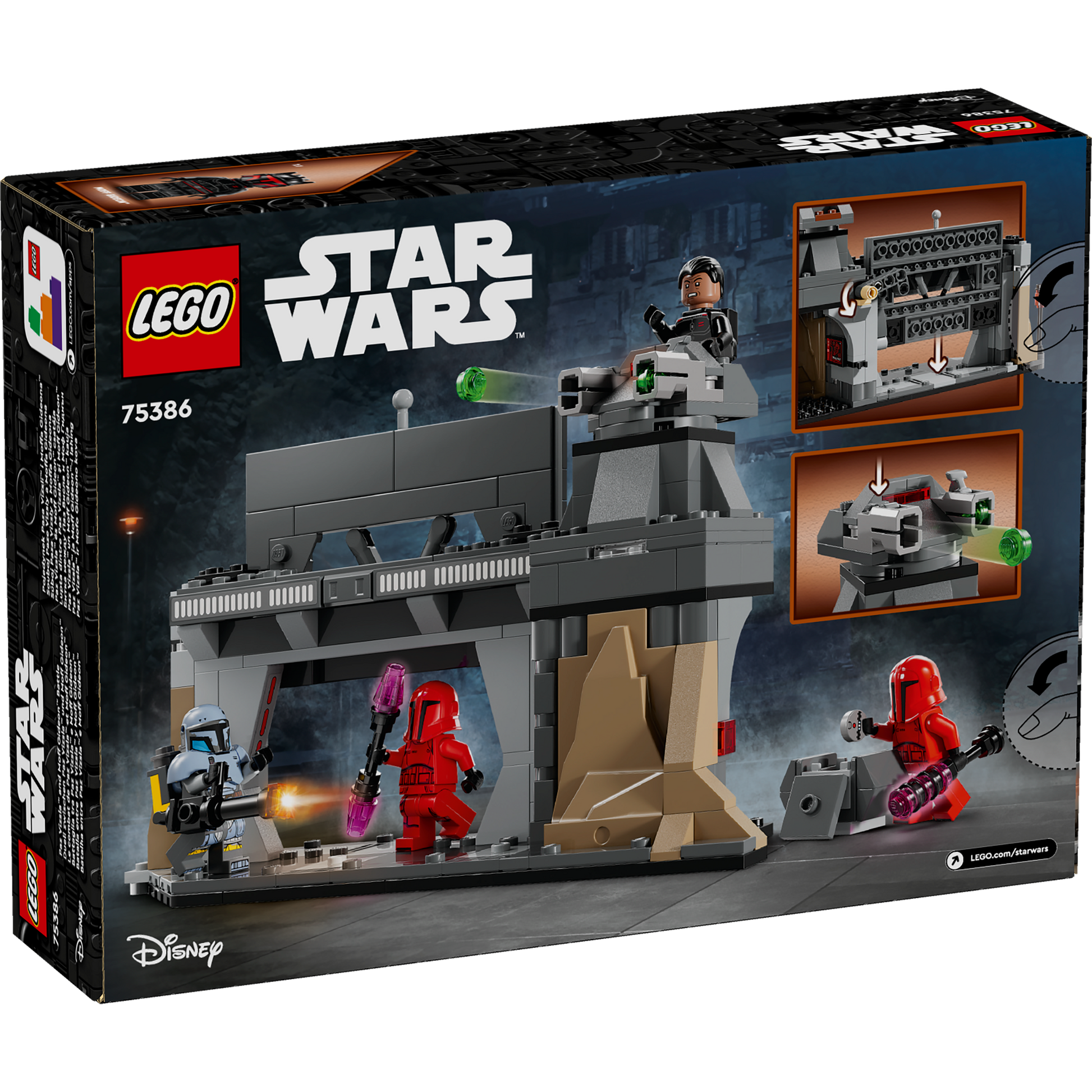 Build the drama of an epicStar Wars: The Mandalorian Season 3 scene with the LEGO®Star Wars™ Paz Vizsla and Moff Gideon Battle set (75386) for boys, girls and any fan aged 7+. A cool fantasy gift for kids, this LEGO brick-built toy playset features a Mandalorian base with an armoured door with a slam-shut trigger, control panels and a rotating, stud-shooting turret. There are also 4 collectible LEGOStar Wars: The Mandalorian minifigures to play out Paz Vizsla’s standoff against Moff Gideon (wearing Dark Trooper Armor) and the Imperial Praetorian Guards, plus accessories such as Moff Gideon’s jetpack and a storage box containing a thermal detonator element for creative play.