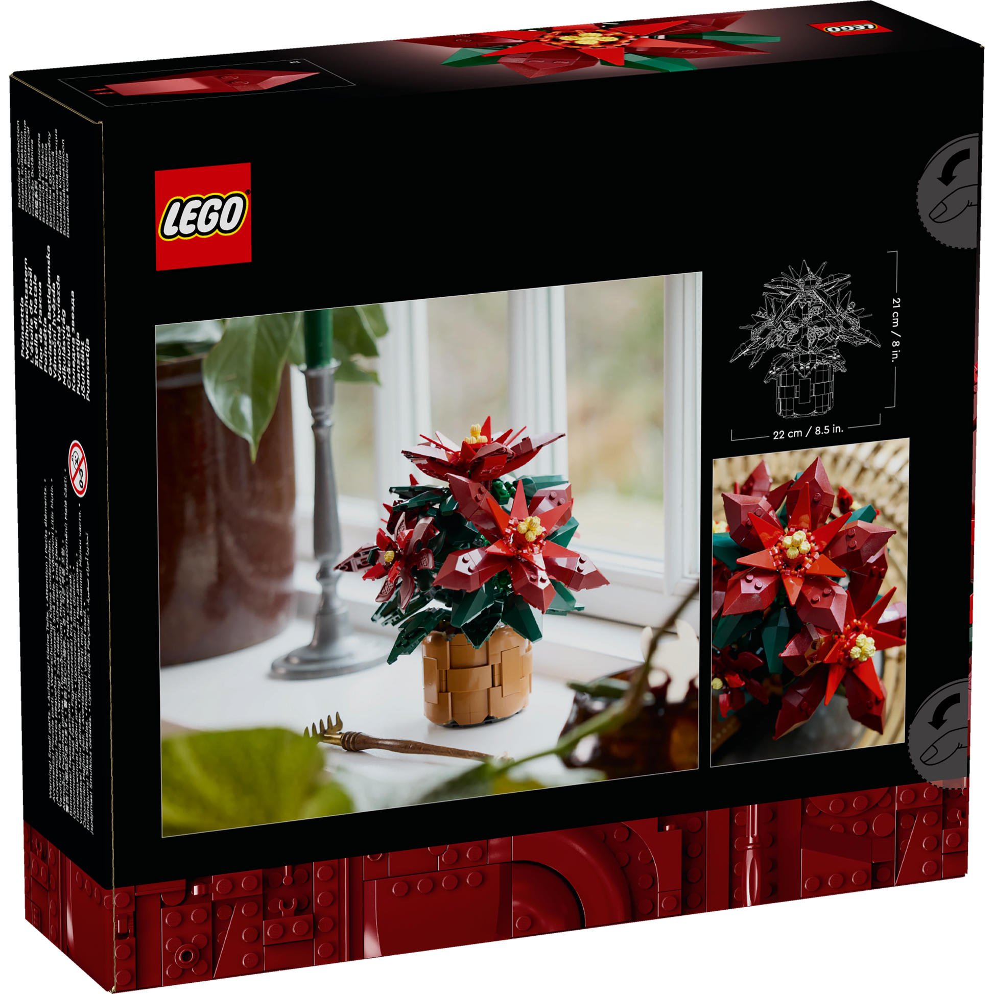 This posable LEGO plant replica depicts a ’Grande Italia’ poinsettia nestled in a woven-basket flowerpot and features green leaves and 5 clusters of vibrant red leaves (bracts) with yellow cyathia at the centre. Easy to assemble, it delivers a rewarding building experience and makes an elegant display for the home and office.
